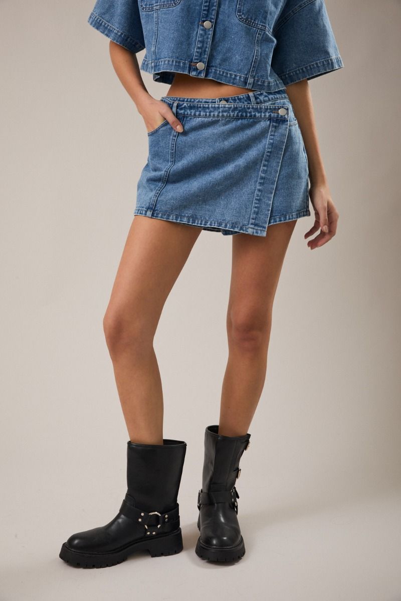Wrap yourself in effortless style with this denim skort—the perfect blend of skirt and shorts for all-day comfort. Featuring a chic wrap design and classic denim construction, it's ideal for everything from casual outings to weekend adventures. Whether you're dressing up your look or keeping it laid-back, this versatile piece works for you and your teen. Pair it with sneakers for a relaxed vibe or dress it up with sandals for something special.