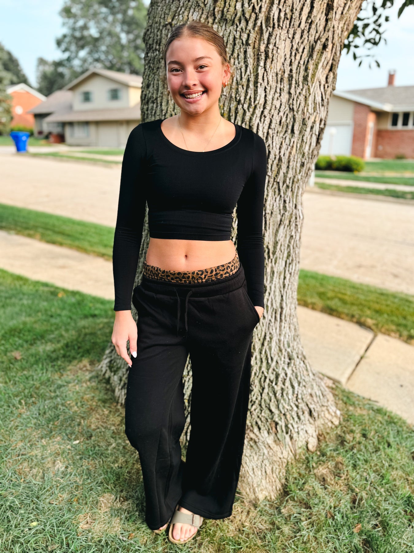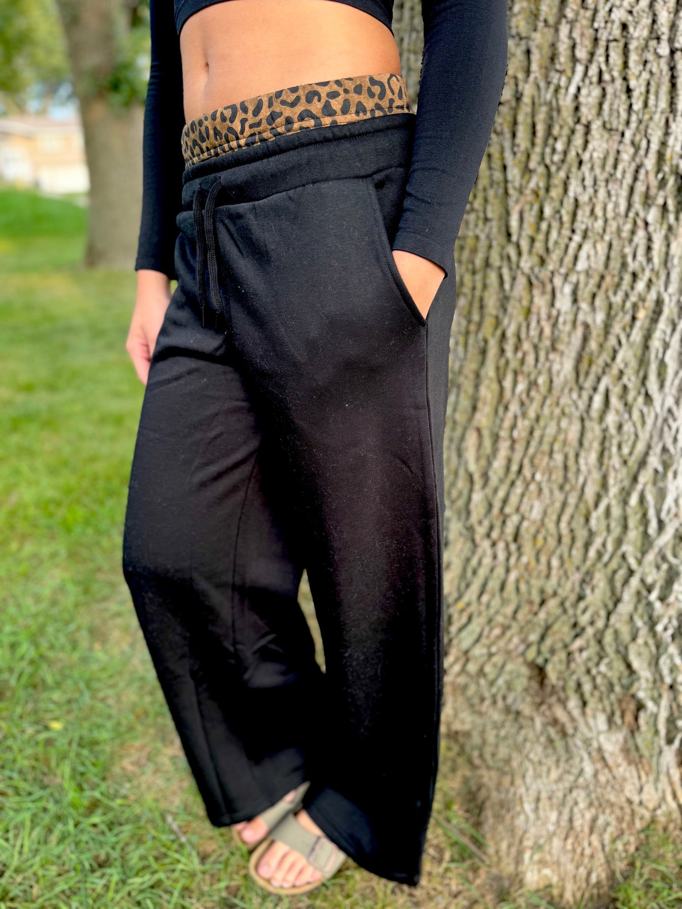 black w/ leopard heavy surfwash pant w/ printed double waist