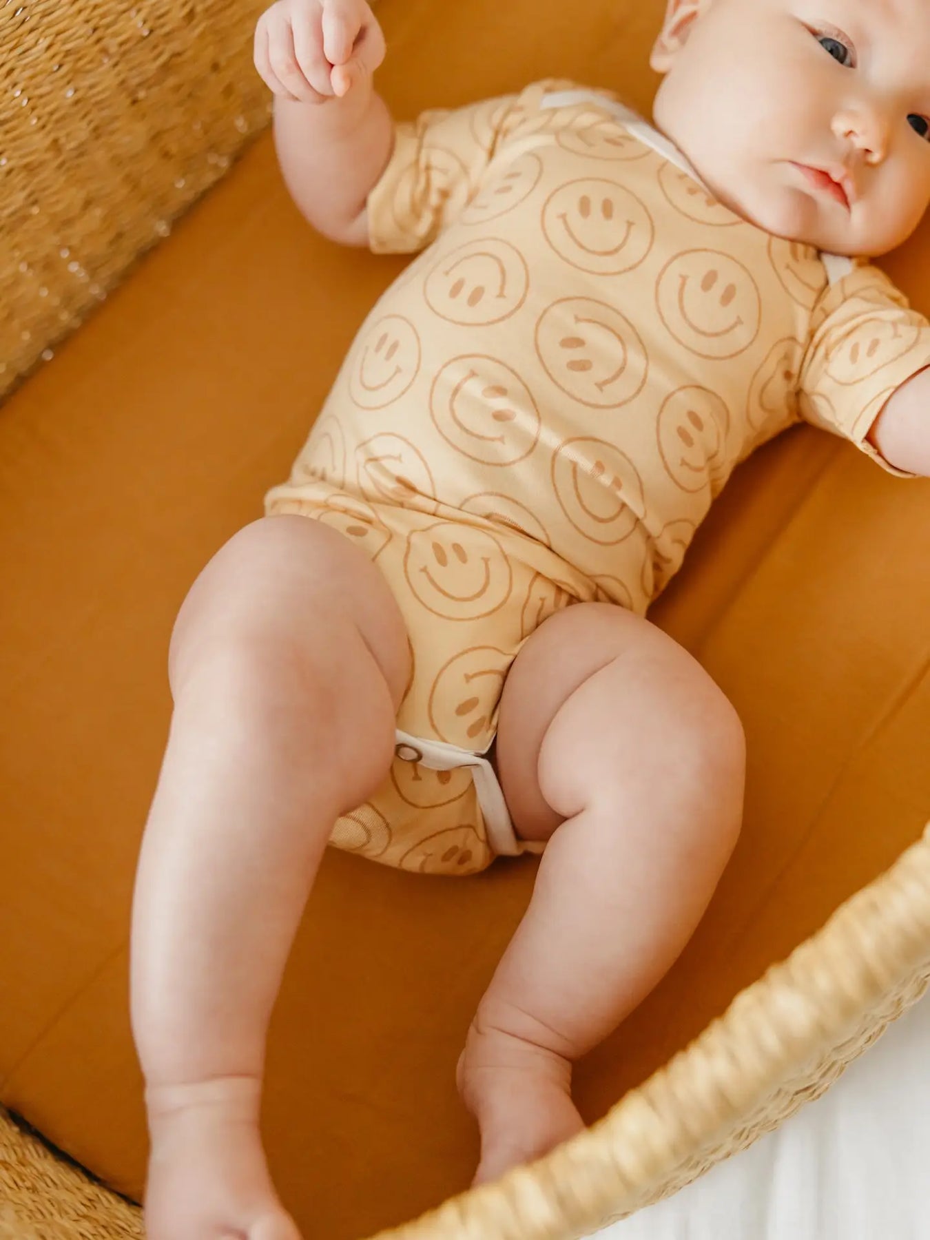 A wardrobe staple in standout prints. You can never have too many bodysuits. Featuring signature Copper Pearl prints and buttery soft fabric, these everyday basics feel anything but ordinary. Parents love the overlap shoulders for easy on and off.