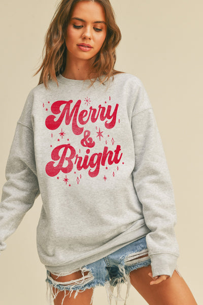 Merry & Bright light heather gray graphic sweatshirt