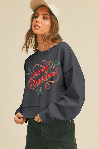 Merry Christmas leaves heathered charcoal sweatshirt