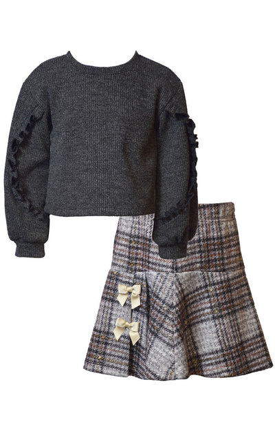 gray plaid skirt set