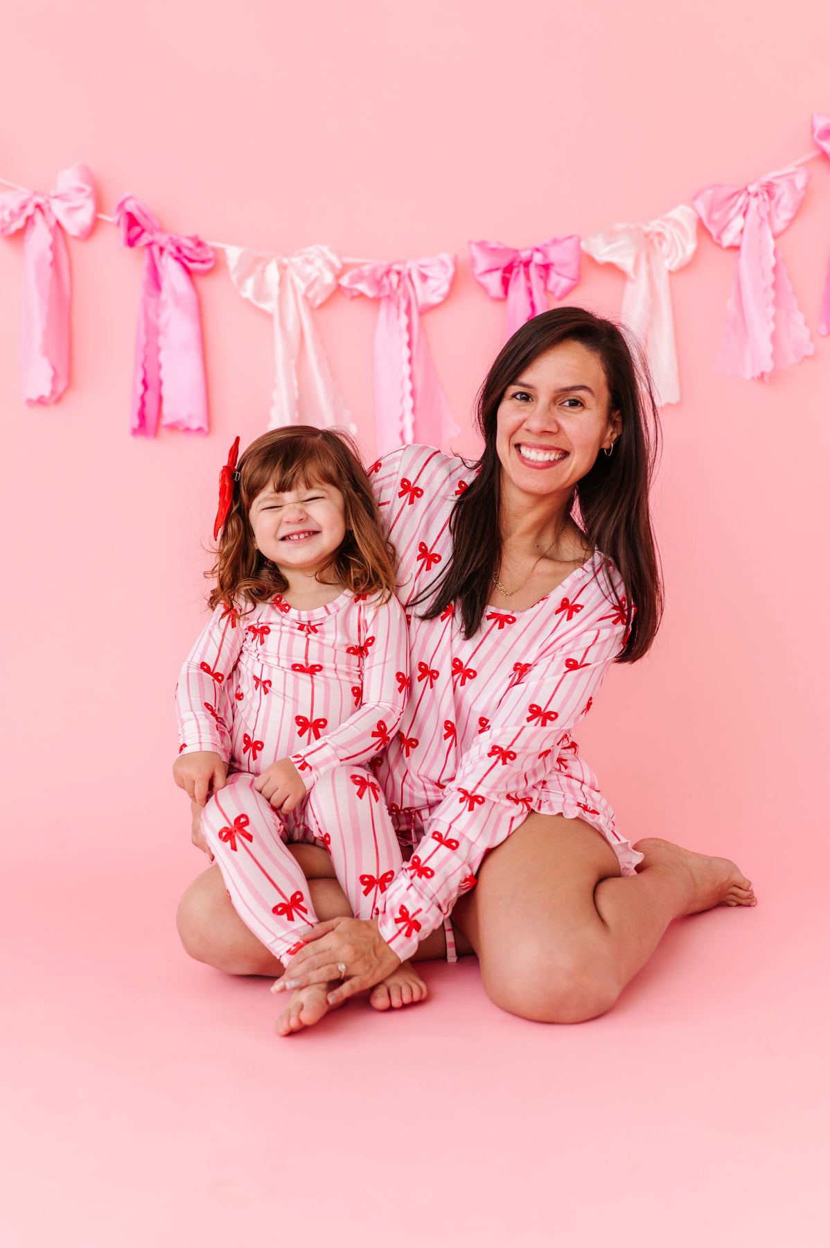 Pretty, playful, and made for lounging. This Women’s Short Lounge Set brings cozy comfort with a flirty twist. Featuring an allover red bow print on soft pink stripes, this set is pure feel-good charm for your slow mornings, movie nights, and everything in between. The relaxed long-sleeve top pairs perfectly with ruffle-hem shorts for a look that’s as cute as it is comfy.