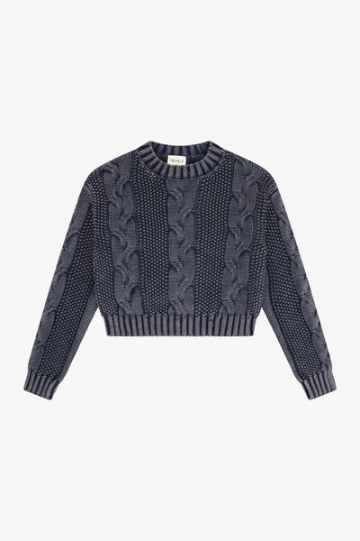 washed denim cable knit sweater top