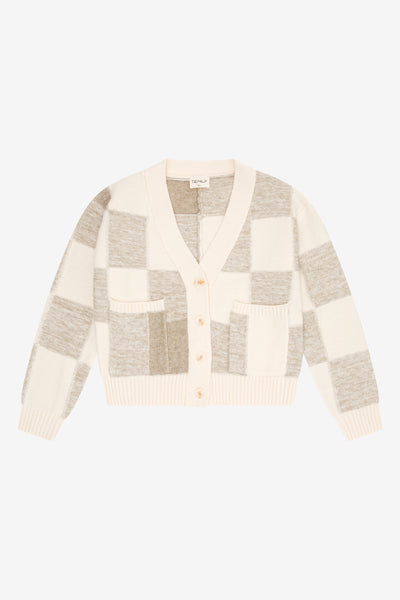 ivory/oatmeal checkered pocket cardigan
