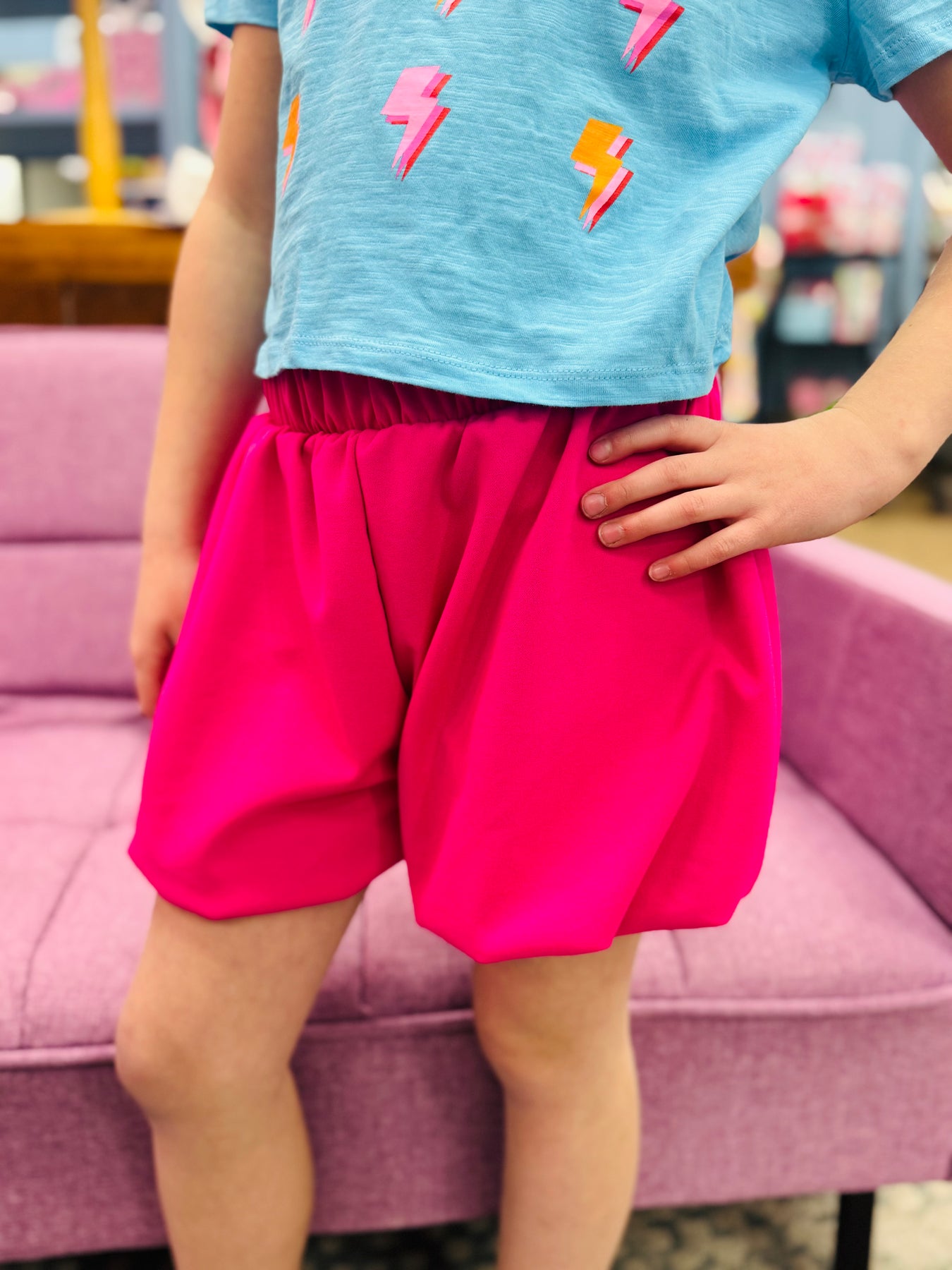 Hot pink scuba crepe bubble short that transforms your look with its playful bubble-skirt silhouette. Crafted from incredibly soft fabric, this tween essential hugs in all the right places while giving you that adorable, on-trend vibe. Perfect for everything from casual hangouts to special occasions—it's the short that makes you feel as fabulous as you look!