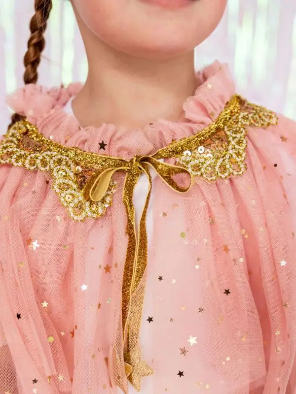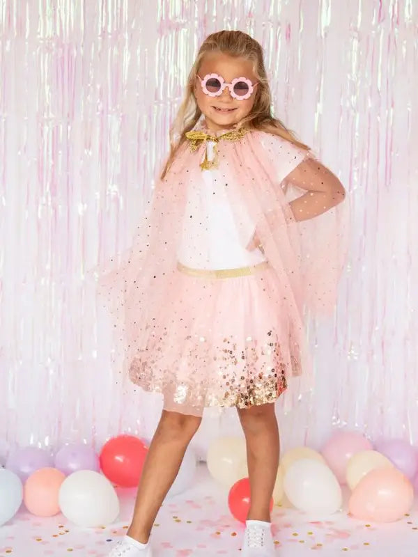 Sweet Wink capes are designed for all the little girls that love to play pretend, dress up, and believe they are superheroes - because they are! Features: Color: Pastel rainbow ombre tulle accented with multi color stars and a pink velvet necktie Size: One size fits all; recommended for ages 3+ Care: Hand wash; line dry The Sweet Wink difference: Super soft tulle that doesn’t scratch or itch “Shed-free” embellishments ensure glitter does not sprinkle around the house Pair this cape with a Sweet Wink tutu and tiara for the ultimate dress-up ensemble!