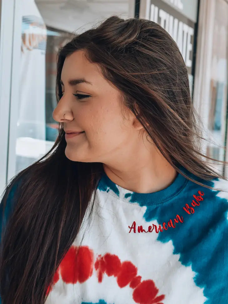 american babe embroidered tie dye tee