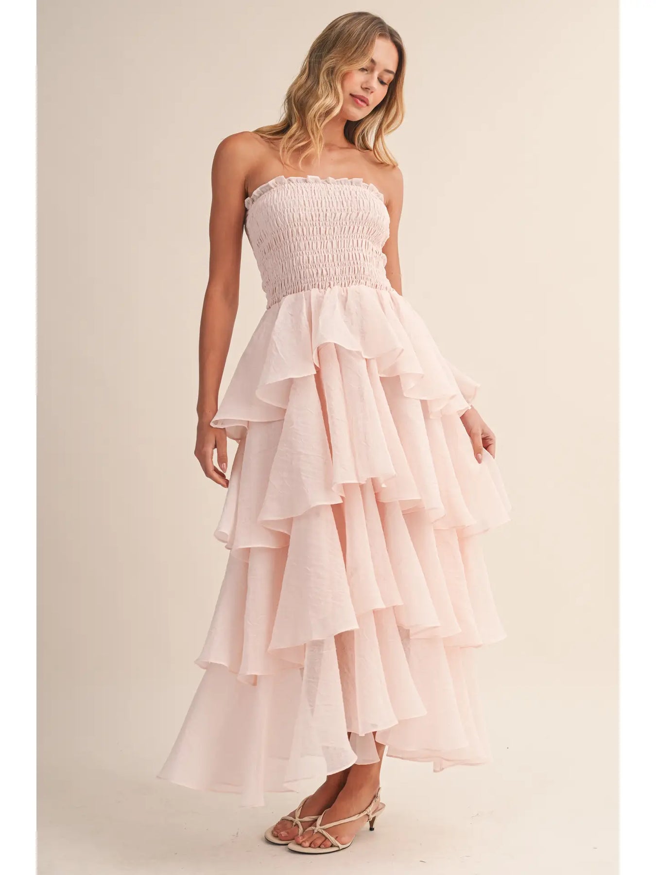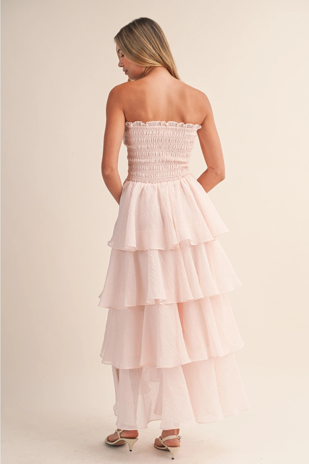 baby pink smocked maxi dress
