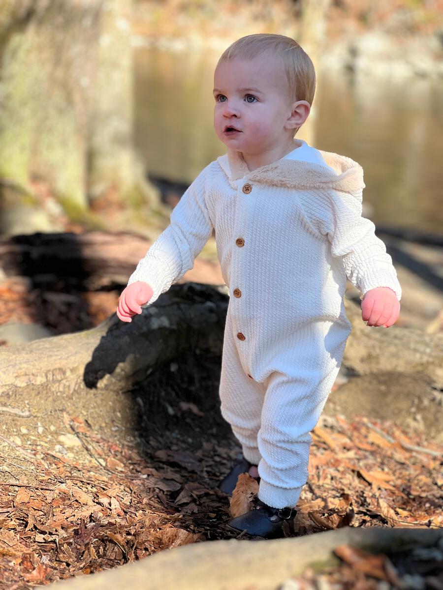 bailey ivory knit hooded romper