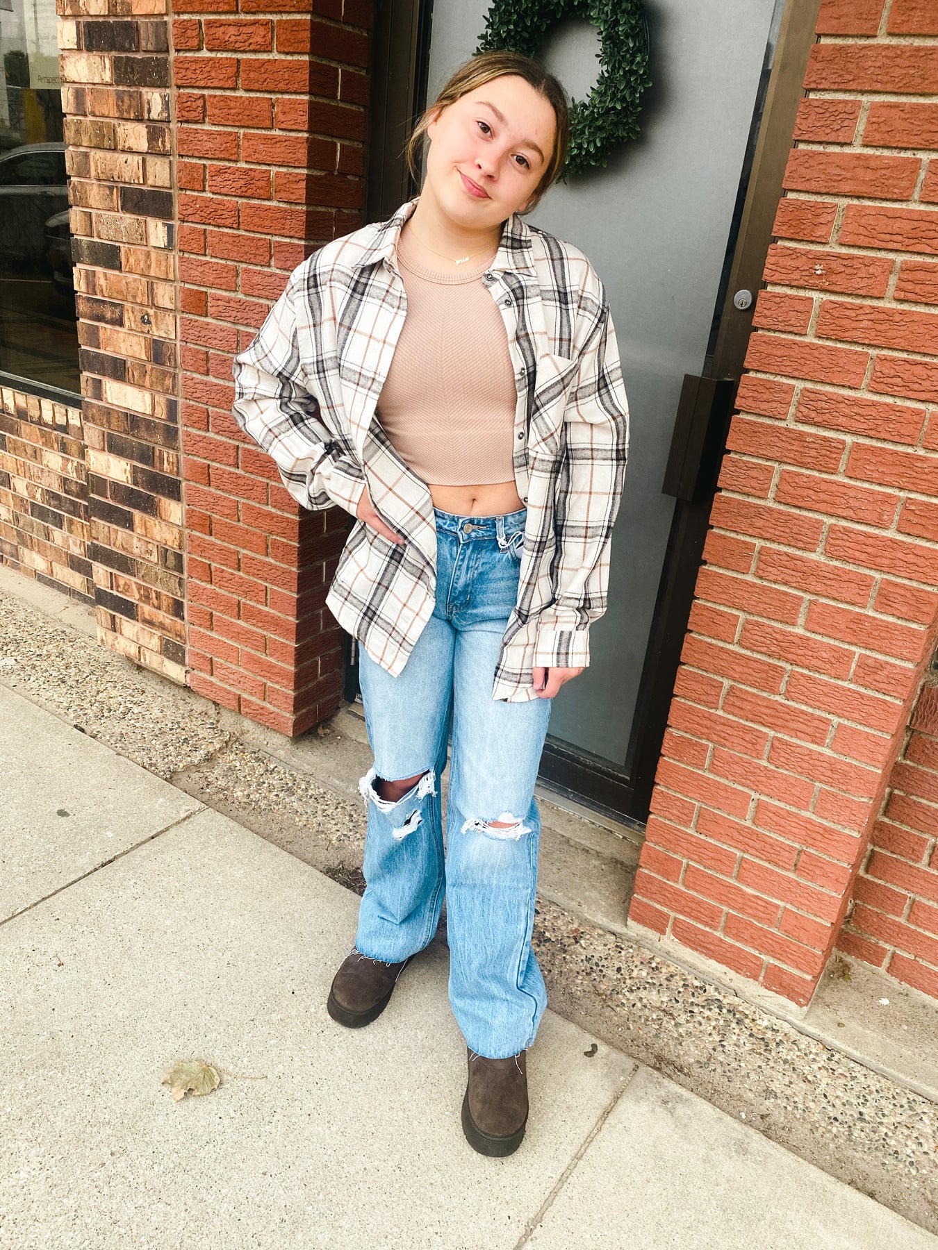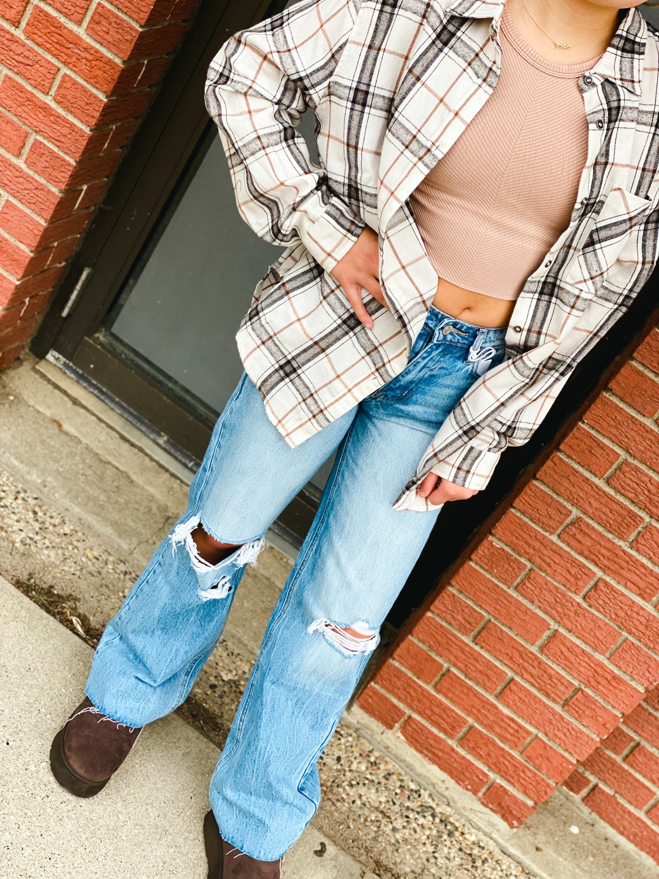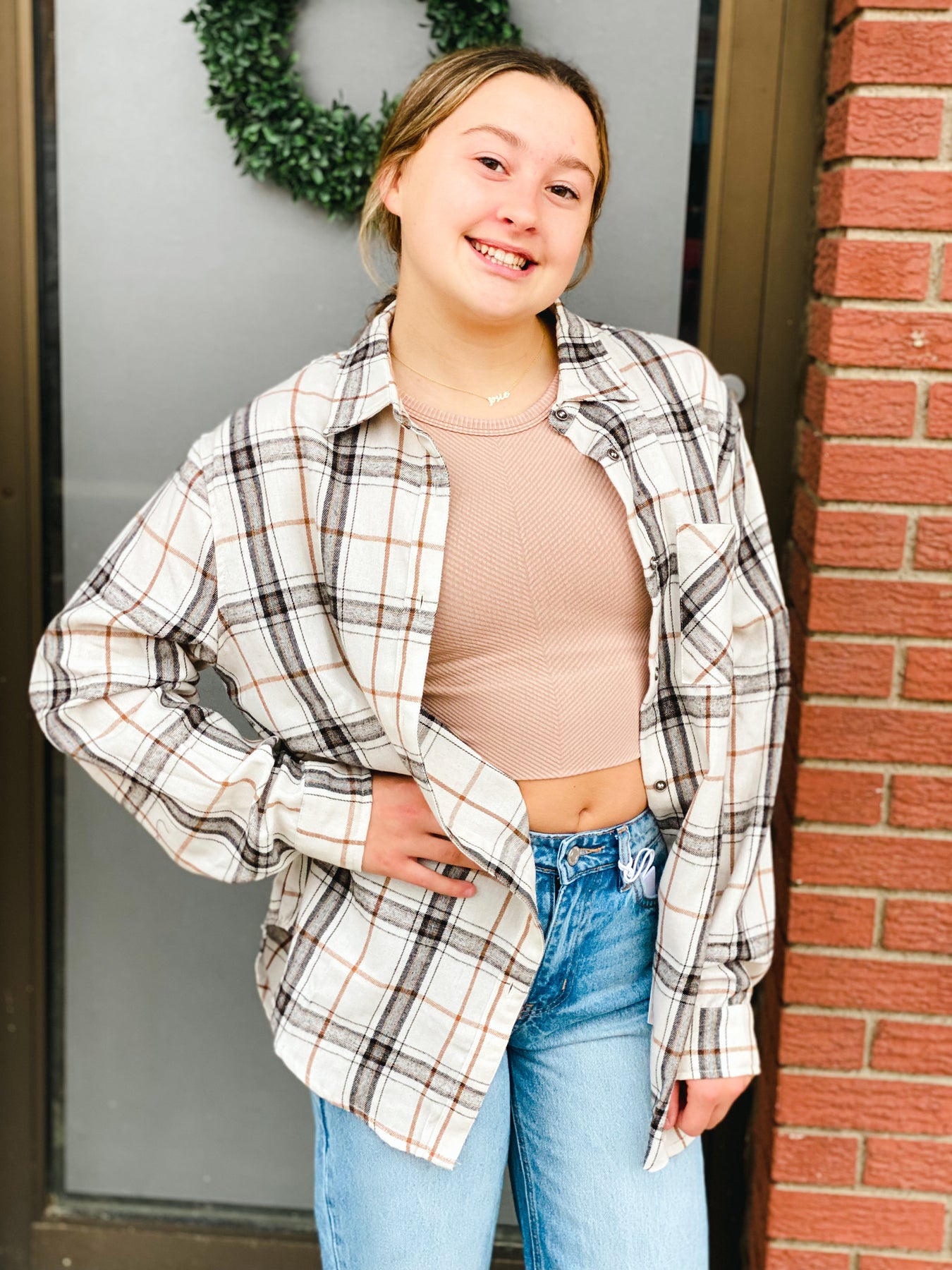 Our Bone Encore Plaid Shirt offers timeless style and effortless comfort. Featuring a classic collar, button-down front, chest pocket and long sleeves which can be rolled up or down for a stylish look, you'll be ready for anything. Experience the perfect balance of fashion and comfort with this oversized stunner!