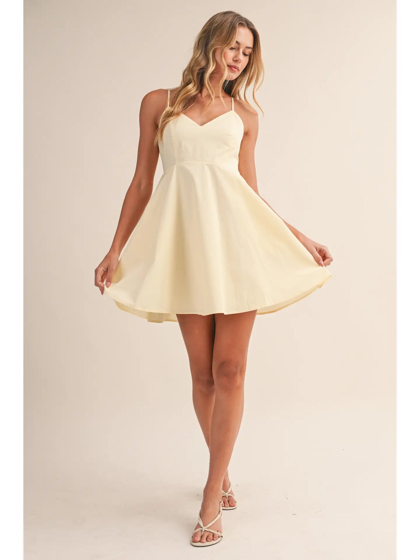 butter v neck cami flare mini dress w/ bow