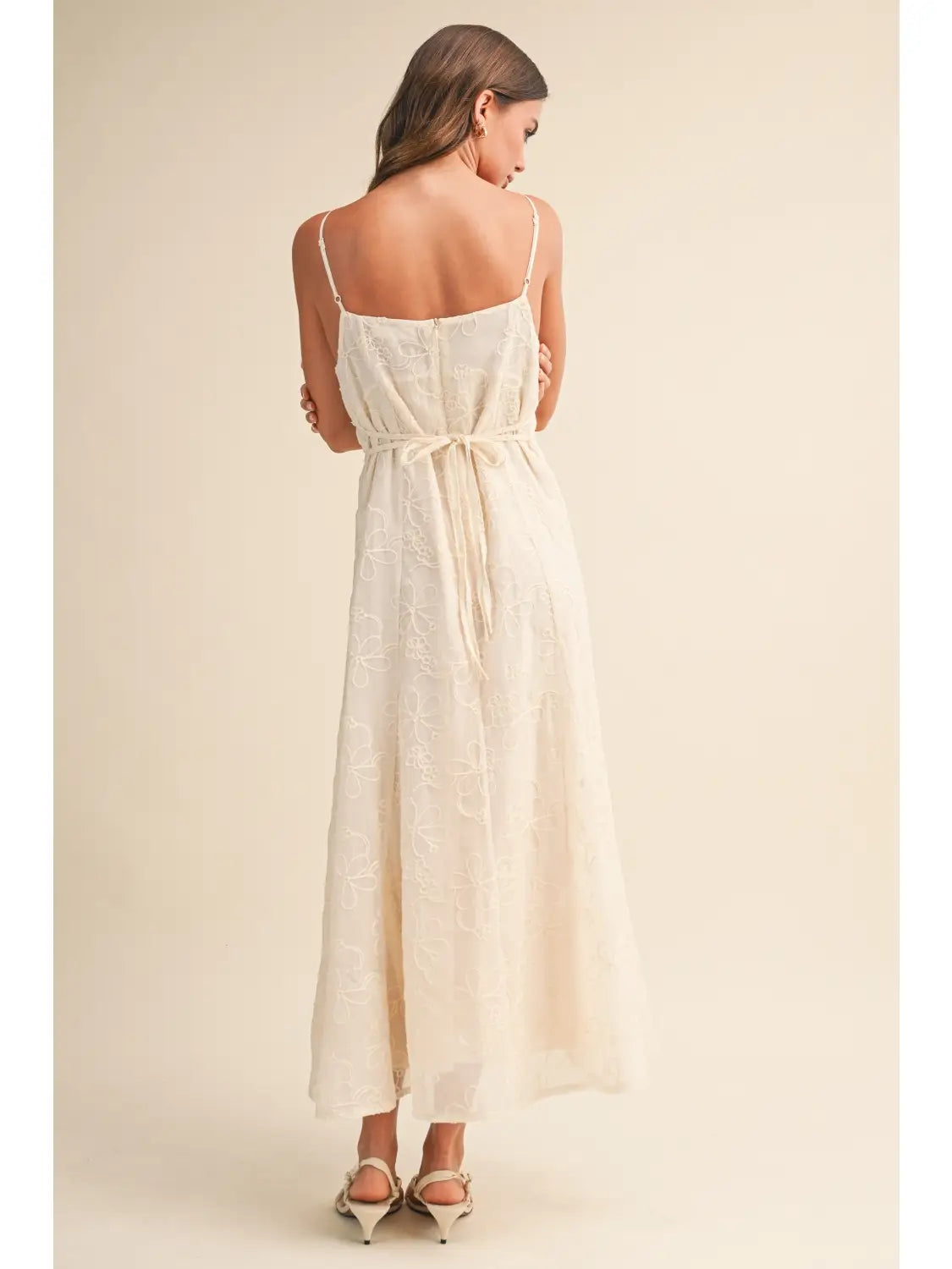 floral embroidered midi dress w/ double ribbon