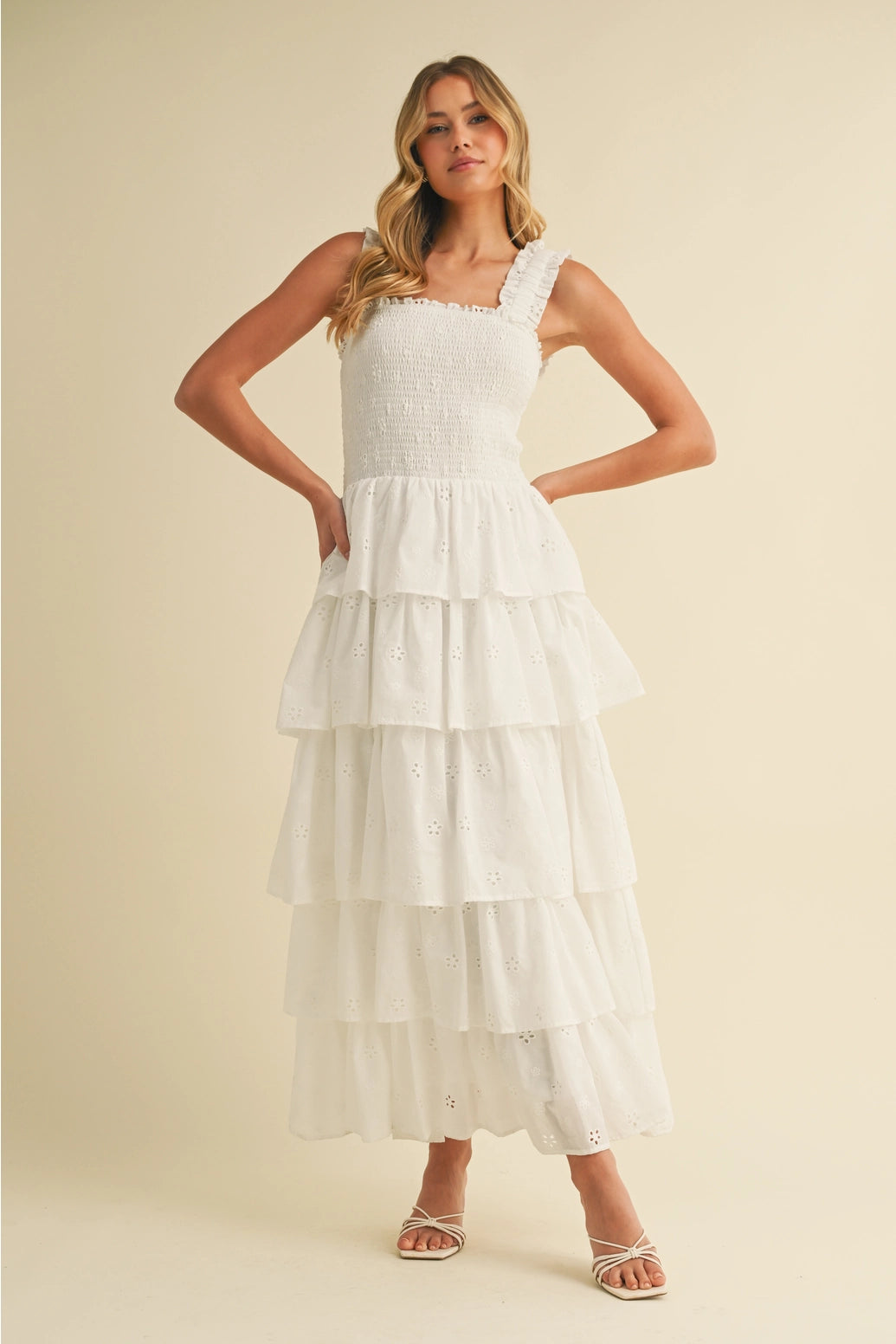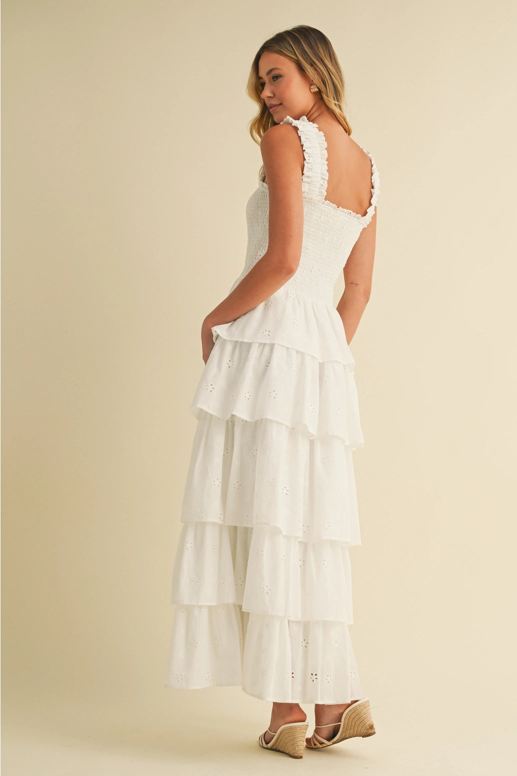floral eyelet tiered maxi dress