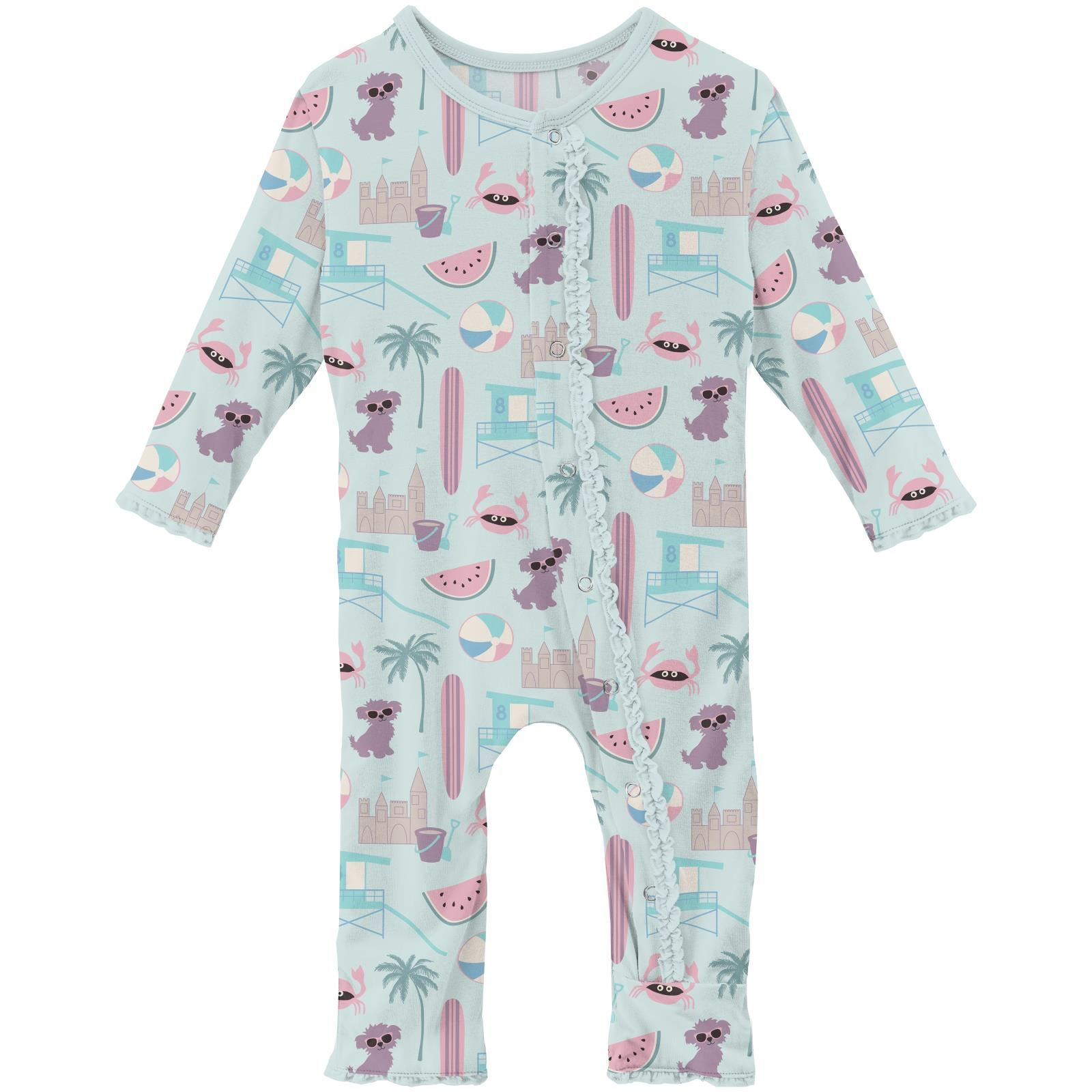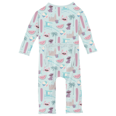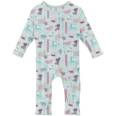 fresh air beach day print muffin ruffle coverall w/ 2 way zipper