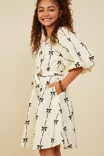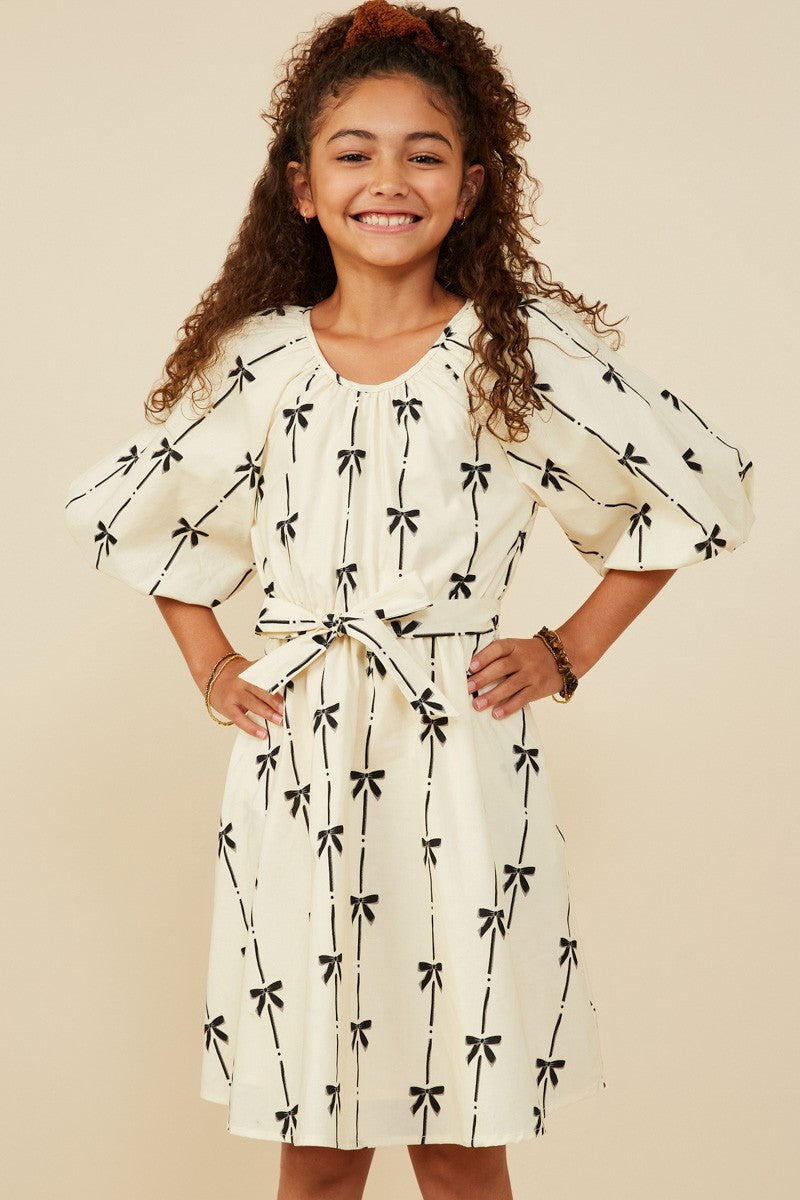 girls ivory all over bow print dress