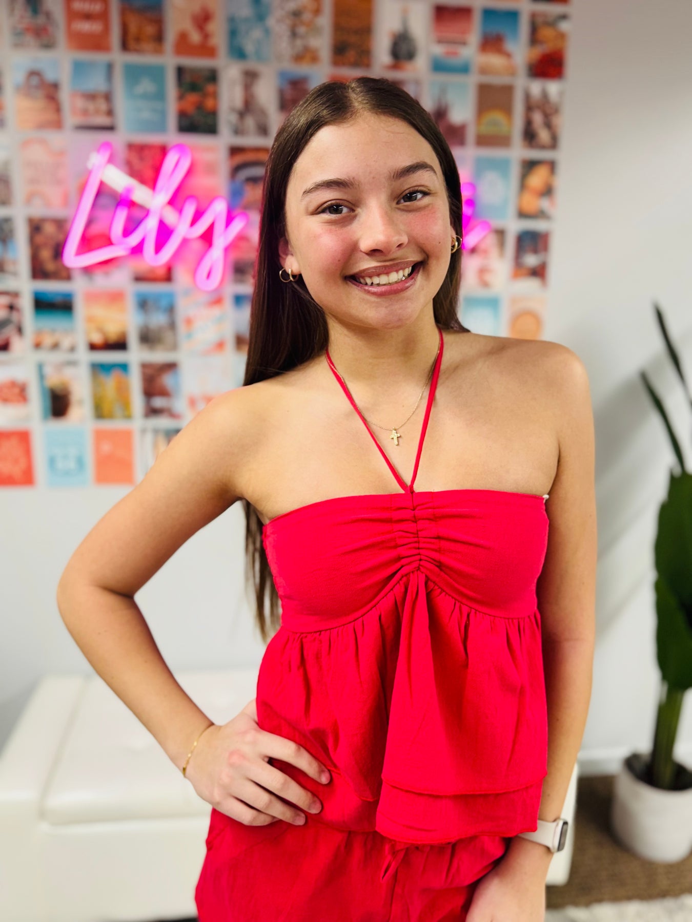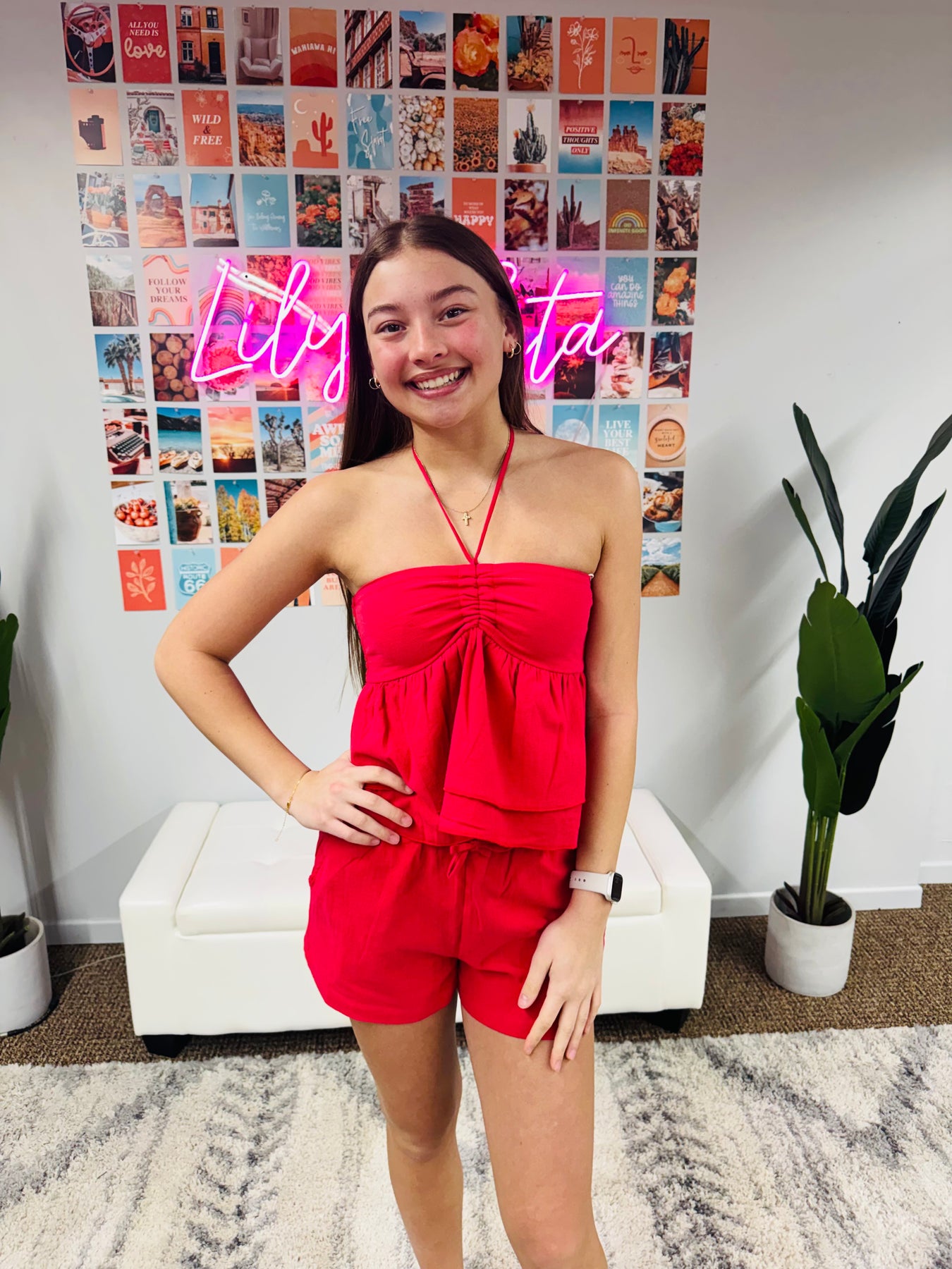 poppy red textured cotton halter top