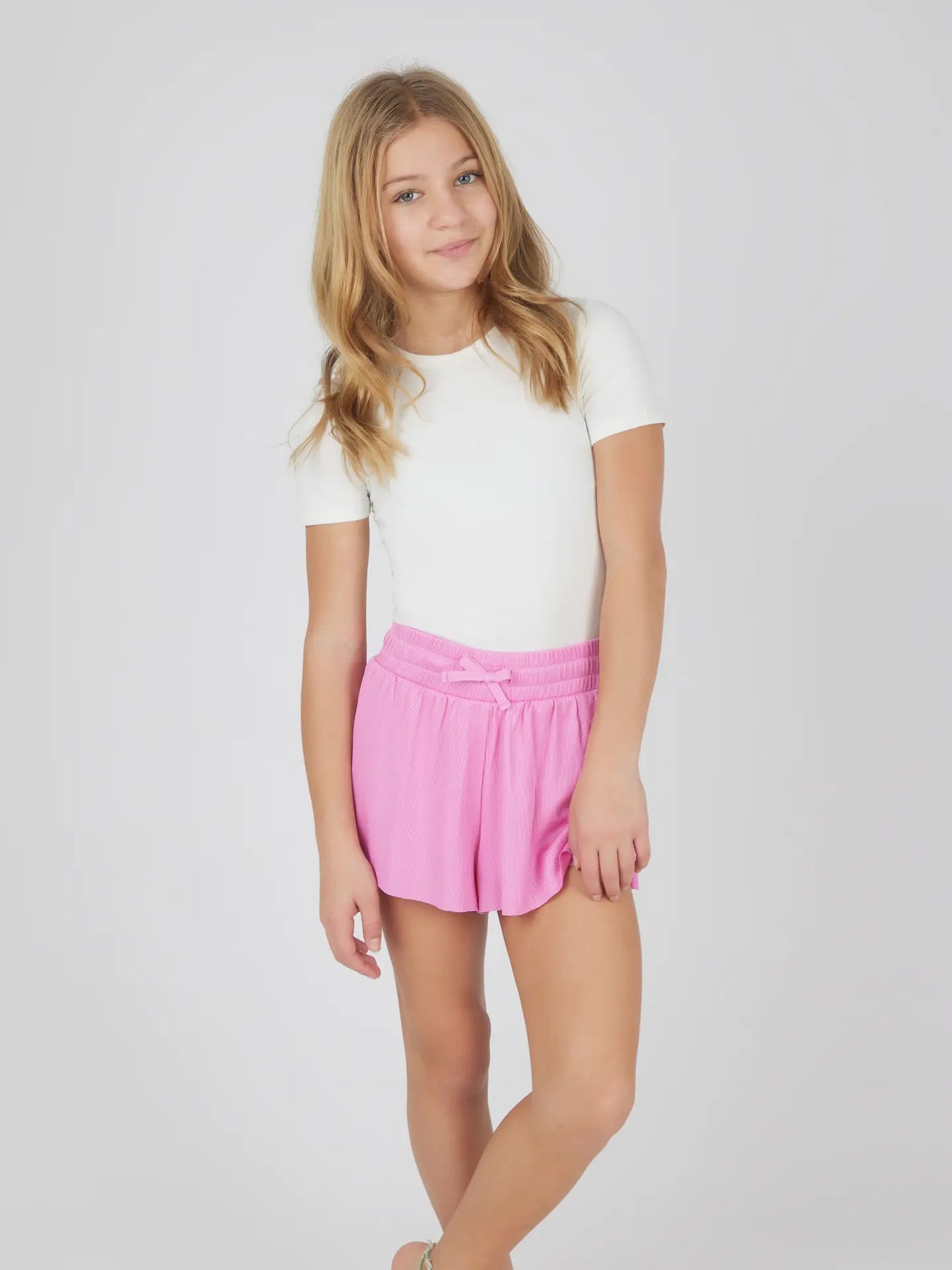 tween girl pink ribbed flutter short